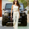 Pairs perfectly with the Silk Sculpt Drape One-Shoulder Top for a sleek, coordinated look.