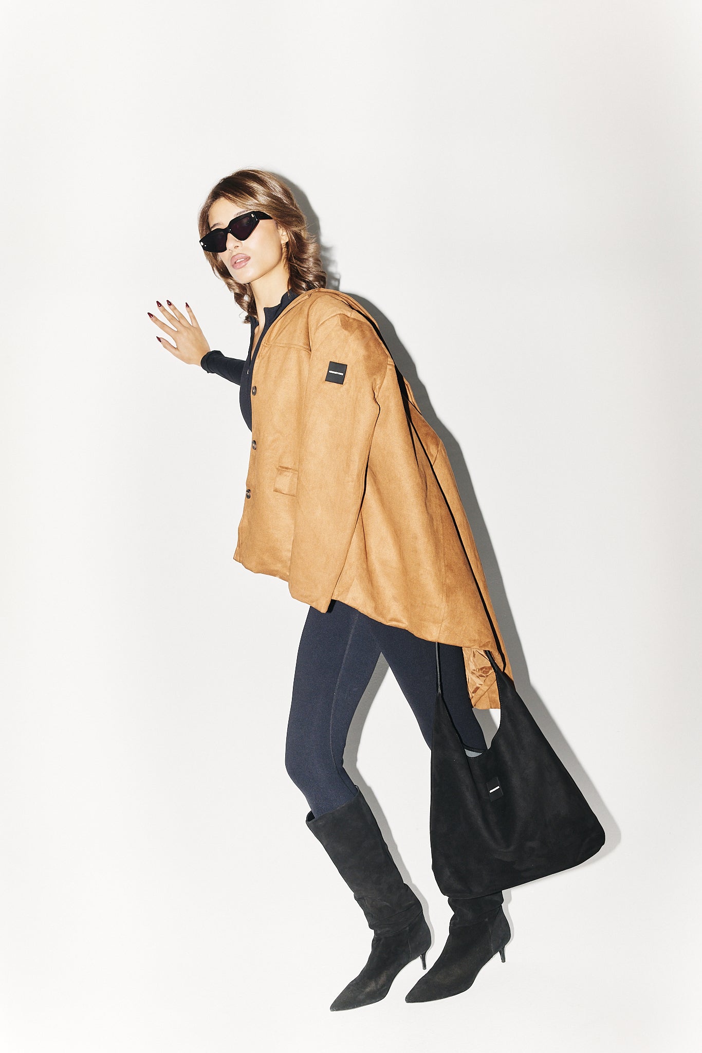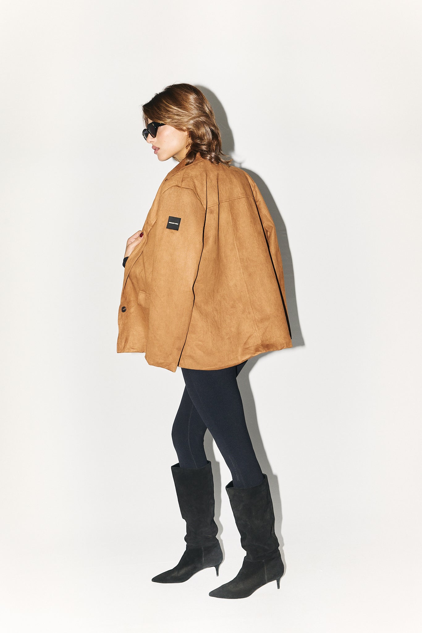 Luxury meets athleisure—our first-ever limited-edition blazer in a soft, light camel-inspired suede-effect finish.